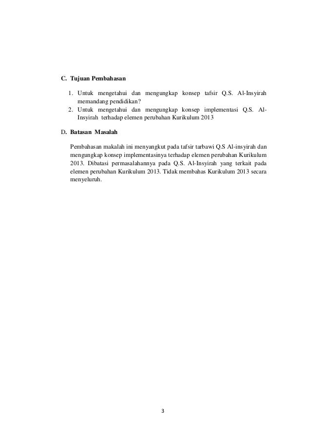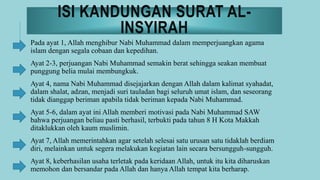 Kesimpulan kok panjang amat yang namanya kesimpulan itu ringkasan bukan copy paste dari website orang. Bismillahirrahmaanirrahiim(i) dengan menyebut nama allah yang maha pemurah lagi maha penyayang. Nama alam nasyrah diambil dari kata alam nasyrah yang terdapat pada ayat pertama, yang berarti: Karena tergolong surah pendek, maka al insyirah atau lebih dikenal dengan surah 'alam nasyrah' sering dibaca kebanyakan muslim saat sholat. Arti kata al insyirah sendiri secara bahasa ialah melapangkan dimana.